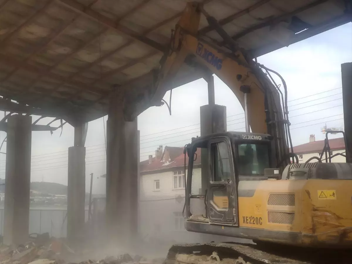 Mimar Sinan Mahallesi Mimar Sinan Caddesi’nde 8 Kasım’da 7 kişinin öldüğü, 6 kişinin yaralandığı yangının ardından fabrikada başlatılan yıkım çalışması devam ediyor.