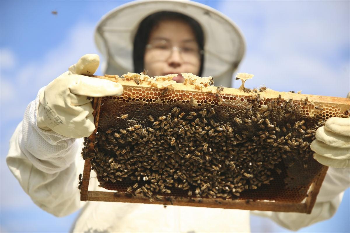 Rabia Beyza Arslan, AA muhabirine, arıcılığın daha çok erkek mesleği olarak bilinmesine rağmen kadınların da çok rahat bu işi yapabileceğini söyledi.