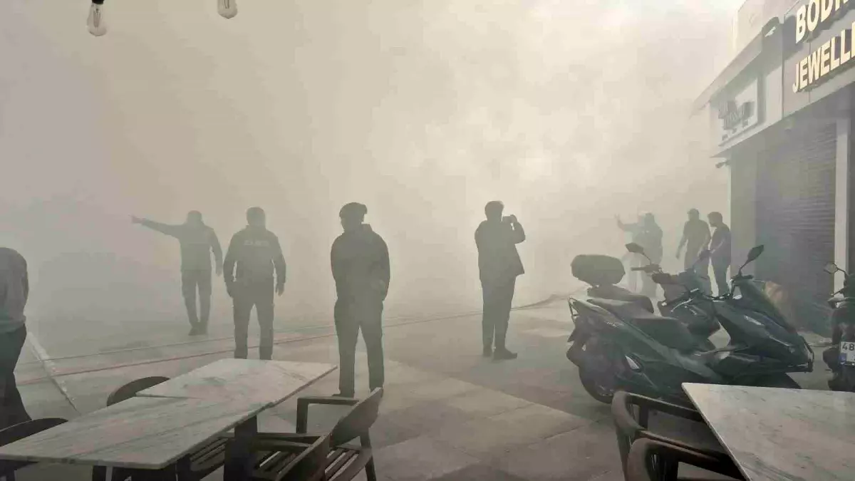 LC Waikiki'nin geri dönüşüm deposunda çıkan yangın, Bodrum sokaklarını dumanla kapladı.