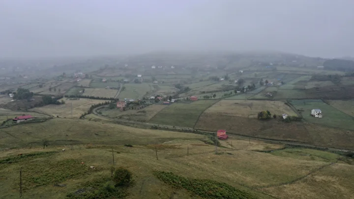 Karagöl Yaylası’ndan sabahın erken saatlerinde sürüsüyle yola çıktıklarını dile getiren Büber, “Akşam Çambaşı Yaylası’nda kaldık. Şimdi yavaş yavaş duman ve çise eşliğinde gidiyoruz. Yolculuk zor geçiyor. Yürüyorsun, koyunu takip etmek gerekiyor. Duman, çise, tam ayı ve kurt havası. Onun için zor.” dedi.